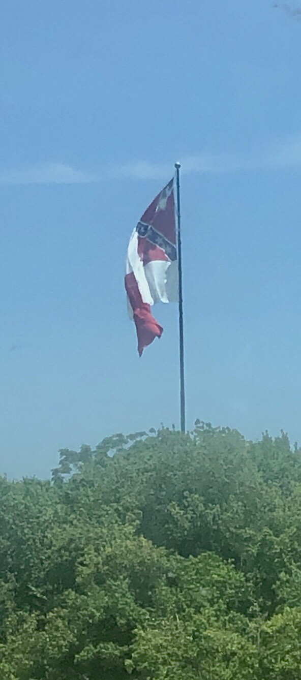 Near the corner of I-74 & I-4 stands a pole 139’ tall with a 60 x 80 flag. The confederate flag hung there for many years until threats of burning it came after the death of George Floyd.
