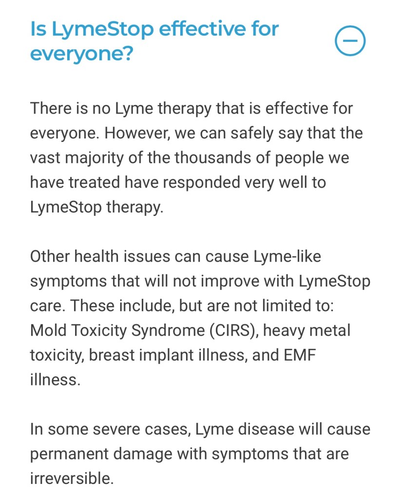 This is the answer from the lymestop faq page: