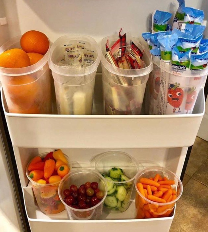 I saw this idea on FB and loved it. This person created a special place in her fridge for kid snacks that they’re allowed to access any time.
